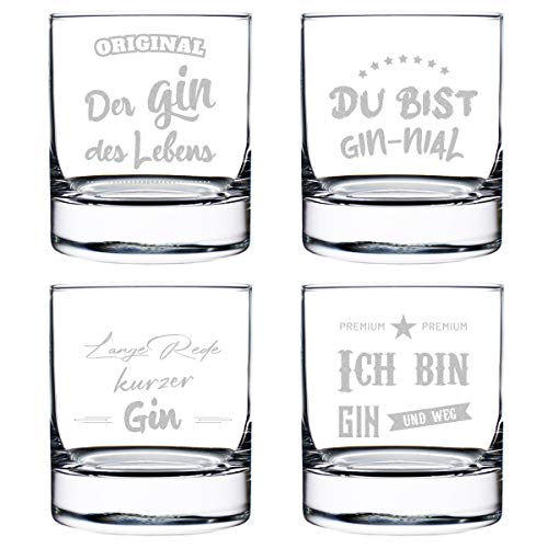 🎁 LIEFERUMFANG – Sie in den Besitz kommen 4x Gingläser anhand gravierte Sprüche – Volumen: 320 ml