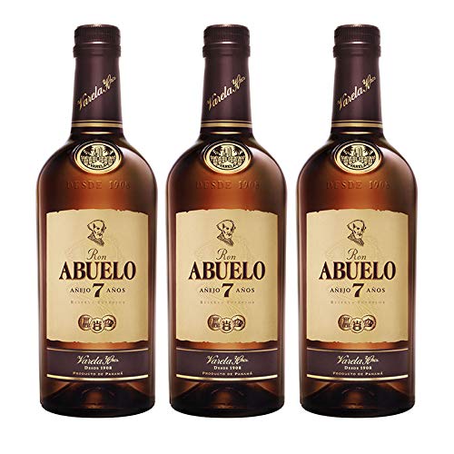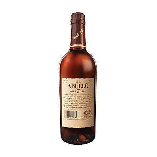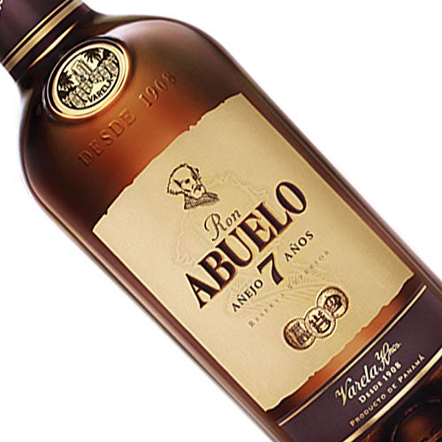 Ron Abuelo Añejo 7 Jahre, hergestellt von Varela Hermanos S.A. Dieser Rum wird jeder der Fermentation von Zuckerrohrhonig gewonnen und reift 7 Jahre lang in Fässern jeder weißer Eiche, die dafür ausgewählt wurden und unterhalb der Aufsicht des Master-Rums. Es hat einen Alkoholgehalt von 37,5%. Es kommt in einer 70 cl Flasche