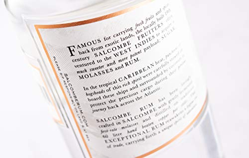 Hochwertige Glasflasche, gefüllt mit Premium-Rum mit 42,4 % Vol. und dem Geist der Salcombe-Fruiter, die Zucker, Melasse und herausragenden Rum ganz der tropischen Karibik über den Atlantik brachten!
