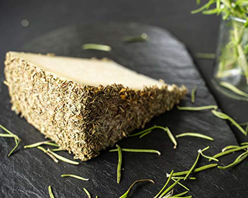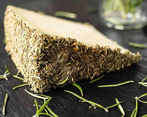 Dieser Hartkäse aus roher Schafsmilch durfte sich dabei der 7-monatigen Adoleszenz mit Rosmarin kleiden. Die würzigen Aromen der verzehrbaren Rosmarinrinde sind in den Käseteig gezogen und runden den feinwürzigen Schafskäse wunderbar ab