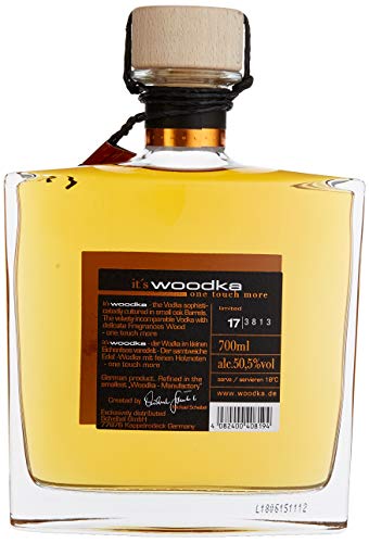 Wodka trifft Holz. Ein außergewöhnlicher, kraftvoller Wodka über intensiven, vollen Aromen nach Vanille, Mandel, Honig, Kaffee über feiner Holznote. Am Gaumen komplexe Aromen nach getrockneten Pflaumen, Vanille, Röstaromen im Übrigen Nuancen von Weinsüße. Scheibel it`s woodka ist ein langanhaltendes, angenehmes Genusserlebnis &ndash, one touch more. Jedweder norddeutschem Weizen ultrarein destilliert, im neuen 350 Liter Eichenholzfass über speziellem Toasting 10-12 Monate gelagert im Übrigen Hinauf 50,5%vol. über Schwarzwälder Quellwasser eingestellt.