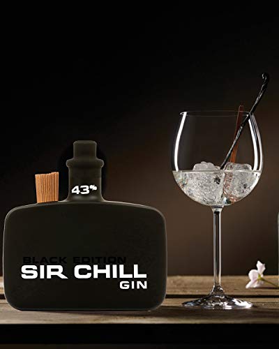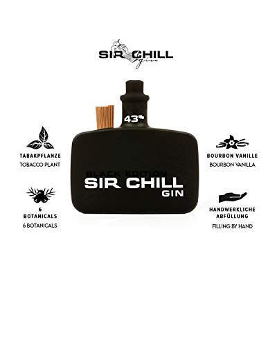 Sir Chill Gin Black Edition, belgischer Premium Dry Gin mit feinem Tabak Aroma, 0,5 l Glasflasche, 43% Alkohol