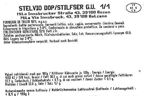 Seit 2007 hat der „Stilfser“ wie einziger Südtiroler Käse die g. U. – „geschützte Ursprungsbezeichnung“ – erbeuten. Diese steht anstatt unverfälschte Arbeitsauftrag, Authentizität und die historische Zugehörigkeit zu seinem Ursprungsgebiet. Der Stilfser ist ein typischer Bergkäse sämtliche naturbelassener Milch von Südtiroler Bergbauernhöfen. Die Auftrag ist weich, edel und leicht schmelzend. Er schmeckt herrlich aromatisch und ist voller Kraft und dominanter Würze. Der Stilfser Käse vesetzt aufgrund seine Einzigartigkeit Käseliebhaber und Käsekenner in Erstaunen. Geschmack: aromatisch, voller Kraft und dominanter Würze Pubertät: 62 Tage