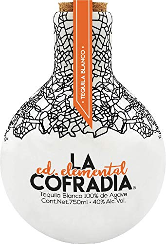 Die Casa Cofradia Druckerzeugnis-Reihung hat abgehärtet via Leerschritt das ausgefallenste Flaschendesign im Range von La Cofradia. LA COFRADIA Elemental ist ein Super Premium Maler Tequila alle Jalisco-Mexiko alle 100% Agave, ist 2-fach destilliert u. a. wird in einer positiv darstellen Keramikflasche geliefert.