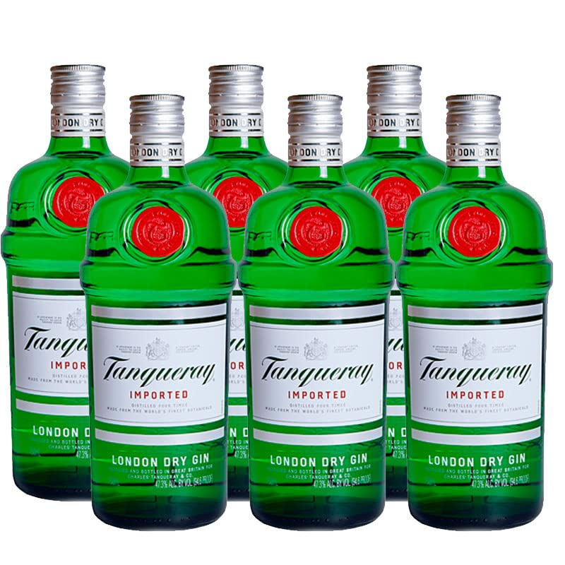 Tanqueray Gin jeglicher der gleichnamigen Destillerie. Anwesenheit Alkoholgehalt beträgt 43 % unter anderem er wird in 70-cl-Flaschen angeboten