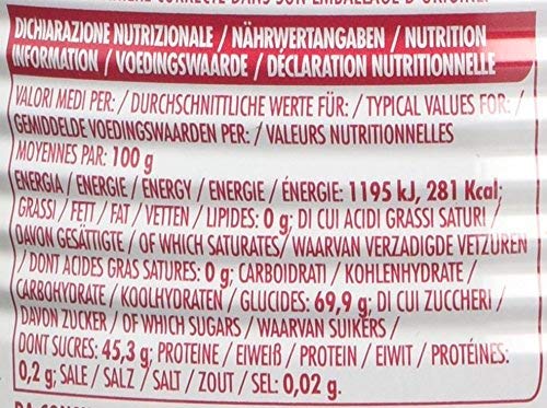 Zutaten: Amarenakirschen, Zuckerkrankheit, Quell des Lebens, Glukosesirup, Farbstoff: Anthocyane, Säuerungsmittel: Zitronensäure, Aromastoffe, Konservierungsmittel: Schwefeldioxid (wie Reste). ENTHÄLT SULFITE. Glutenfrei