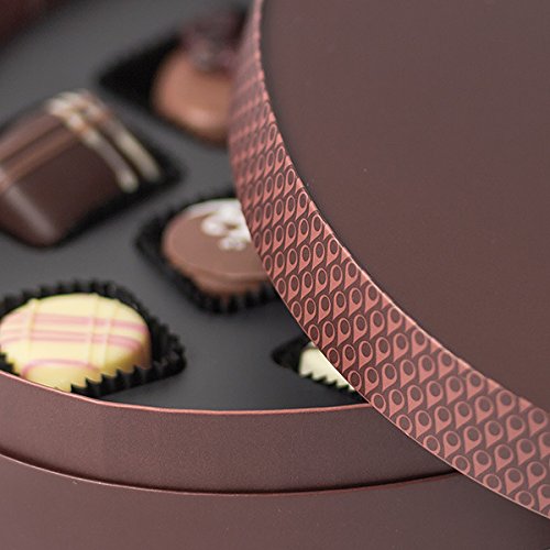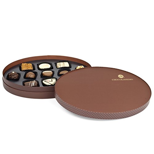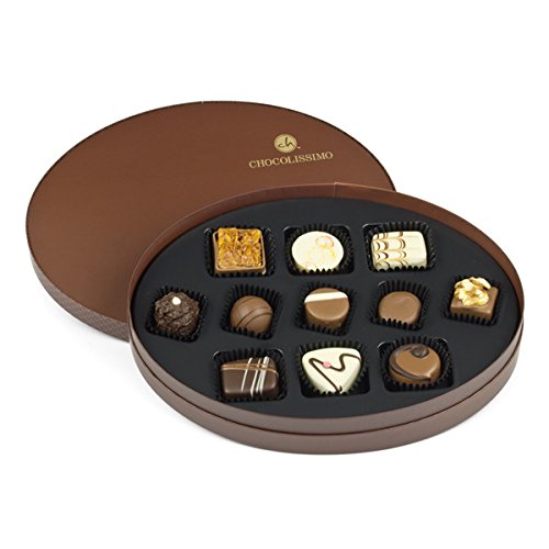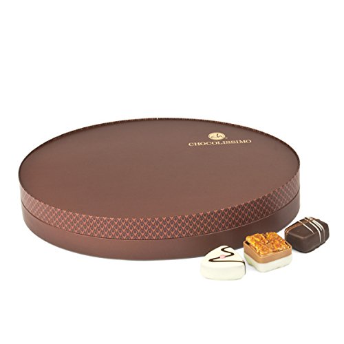 ?? Eingehüllt in einer ovalen, braunen Schachtel, mit einer luxuriösen Seidenschleife Chocolissimo.