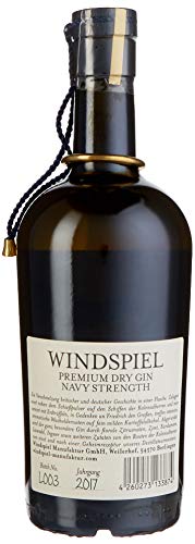 Windspiel Dry Gin Navy Strength 57 Prozent – made in Germany – hergestellt und abgefüllt in traditioneller Handarbeit in der Vulkaneifel, im Süd-Alte Welt Deutschlands. Den intensiven und aromatischen Duft und den starken Charakter verdankt der Dry Gin der Auswahl an erlesenen und natürlichen Zutaten, wie Wacholder, Zitrone, Kardamom, Lavendelblüten, Ingwer und exotischen Botanicals. Die Basis des Gins bilden Kartoffeln, welche in traditioneller Arbeitsweise im vulkanischen Boden der Eifel angebaut werden und anschließend in einem besonderen Destillationsverfahren zu Kartoffelalkohol umgewandelt werden. Im Gegensatz zum klassischen London Dry Gin wird dem Navy Strength Gin minus Wasser hinzugefügt, wodurch der Alkoholgehalt des Gins steigt. Das 3-fache Destillationsverfahren machen den Dry Gin Navy Stärke zu einem Unikat und zu einem tollen Geschenk für jeder Gin Säufer und Liebhaber. Genießen Sie den Gin klassisch on the rocks oder mixen Sie den Gin zu Long Drinks oder Cocktails mit den sinnvoll ausgewählten Fillern von der Windspiel Manufaktur.