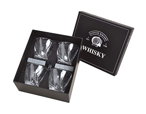 Besonderes Geschenkset – Das Set: 8 Whiskysteine, 4 Kristall Whiskeygläser [300ml] und 1 Samtbeutel für die Kühlwürfel. Das Ganze ist in einer hochwertigen Box verpackt und ergibt so eine wunderbare Geschenkidee für Männer. Geschenke für Männer