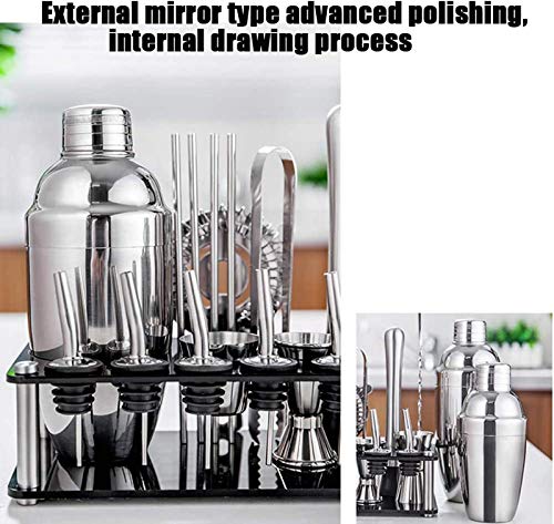 19-teiliges Cocktail-Set aus Edelstahl: Alle Werkzeuge bestehen aus sauberen, nicht kontaminierenden Edelstahlwerkzeugen, um Aufsaugung und Verfärbung zu verhüten und eine lange Lebensdauer zu gewährleisten. Kapazität 750 ml Vibrationssieb und Plexiglas-Aufbewahrungsclip, manueller Entsafter.